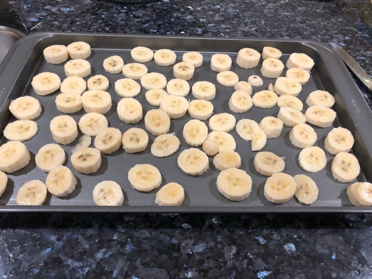 3 Frozen bananas (our trick is to peal and cut the bananas into rounds before freezing them on a pan. Once they are frozen you can scrape them into a freezer bag and store them for up to a week. This makes them easy to dump into a blender and you don’t have to try and peel a frozen banana.)